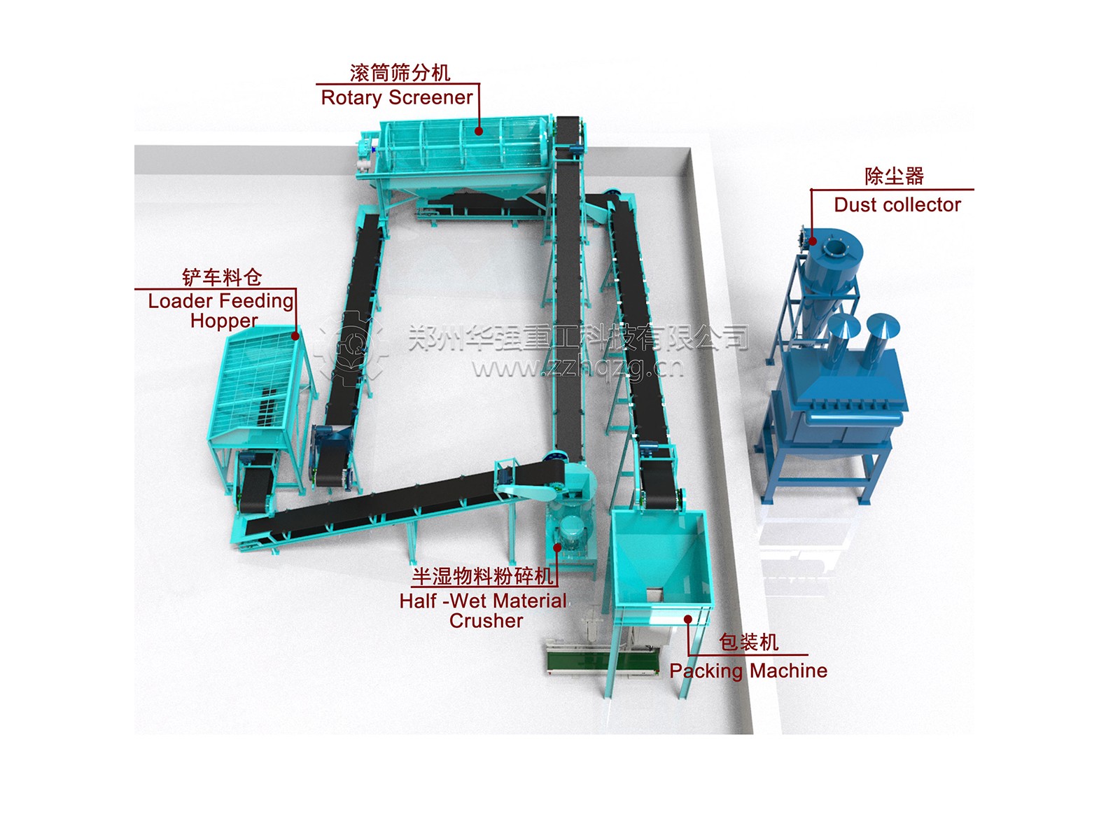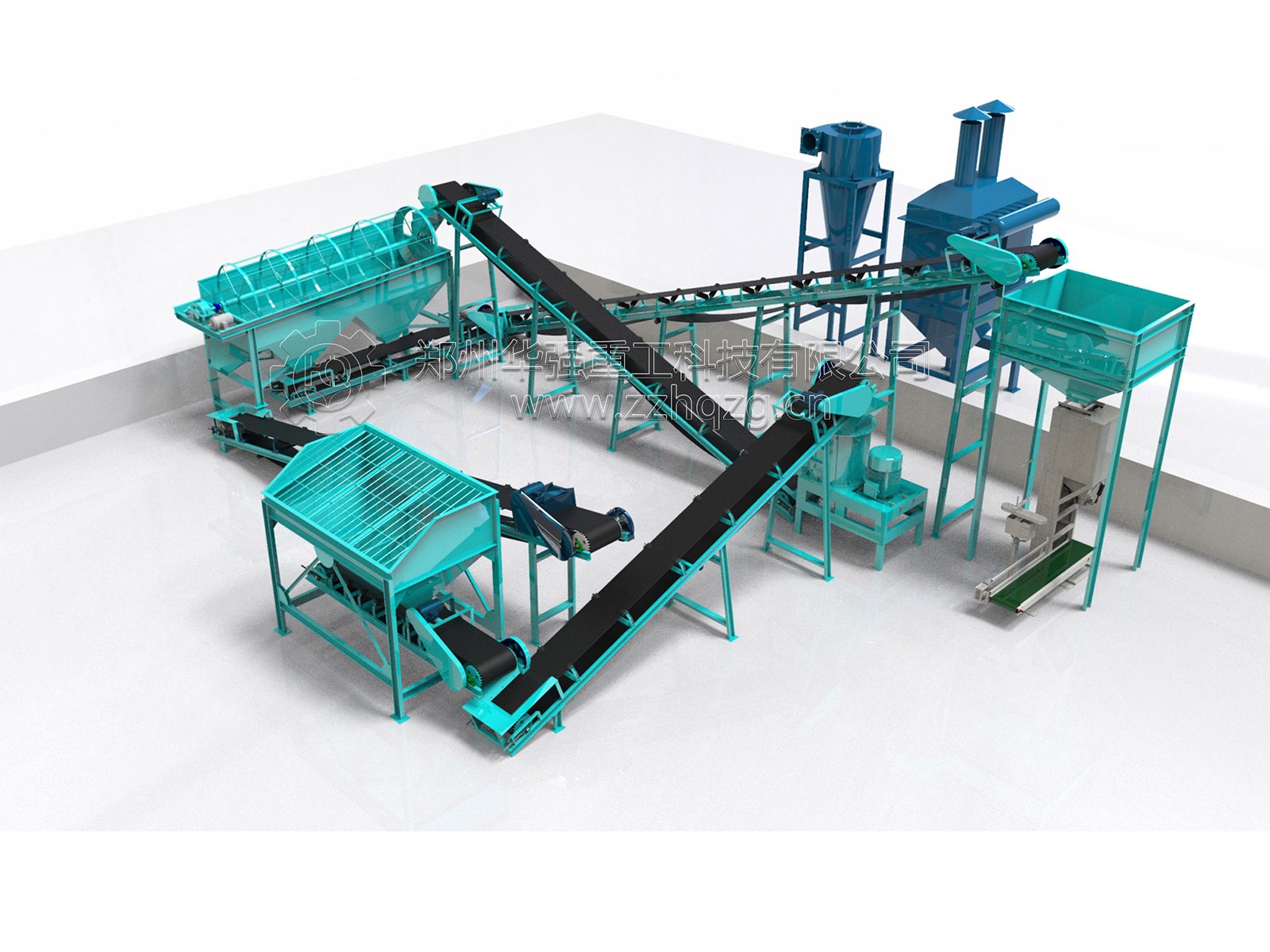 5、一級篩分:初步篩分顆粒半成品,不合格的顆粒返回混合攪拌環(huán)節(jié)再加工,一般用滾筒篩分機。