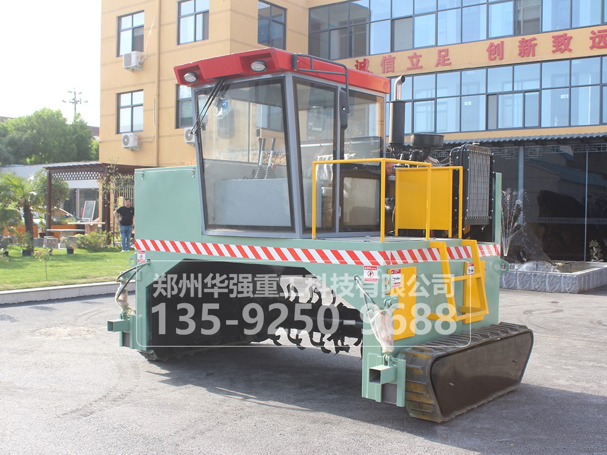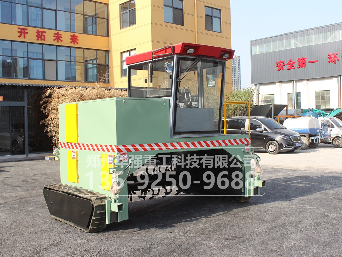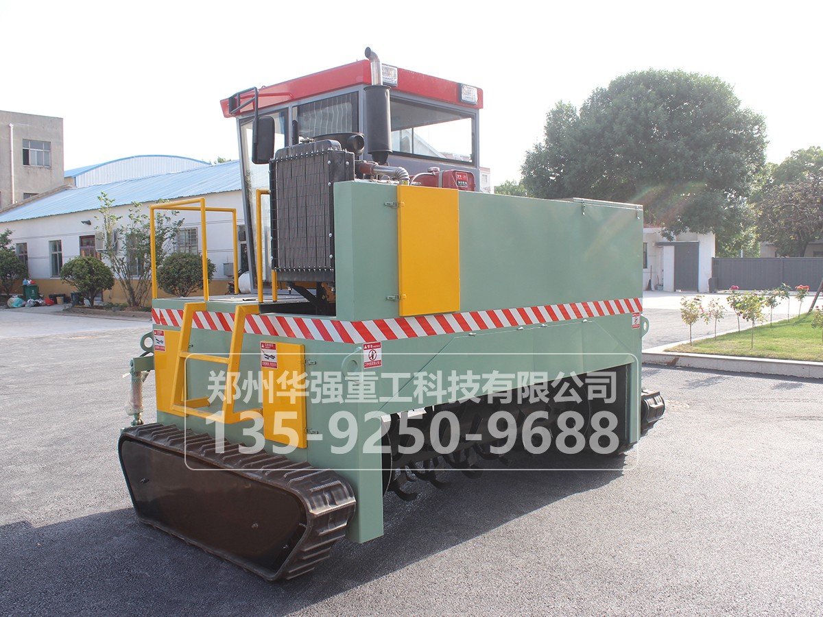 履帶式翻拋車(chē)采用履帶式設(shè)計(jì),可前進(jìn)、倒退、轉(zhuǎn)彎,由一人操控駕駛。行駛中整車(chē)騎跨在預(yù)先堆置的長(zhǎng)條形堆體上,由機(jī)架下掛裝的旋轉(zhuǎn)刀軸對(duì)堆體原料實(shí)施翻拌、蓬松、移堆,車(chē)過(guò)之后篡成新的條形垛堆。即可在開(kāi)闊場(chǎng)地,也可在車(chē)間大棚中實(shí)施作業(yè)。