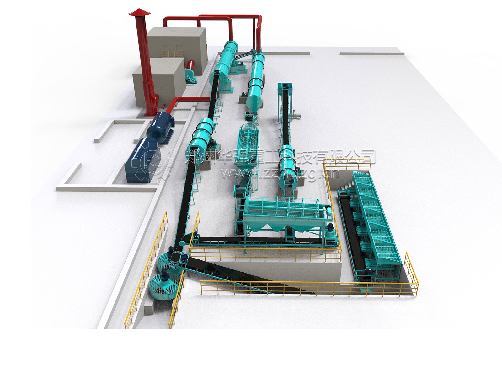 工藝流程:配料系統(tǒng)——滾筒篩分機(jī)——立式攪拌機(jī)——轉(zhuǎn)鼓造粒機(jī)——烘干機(jī)——冷卻機(jī)——自動(dòng)包裝機(jī)。