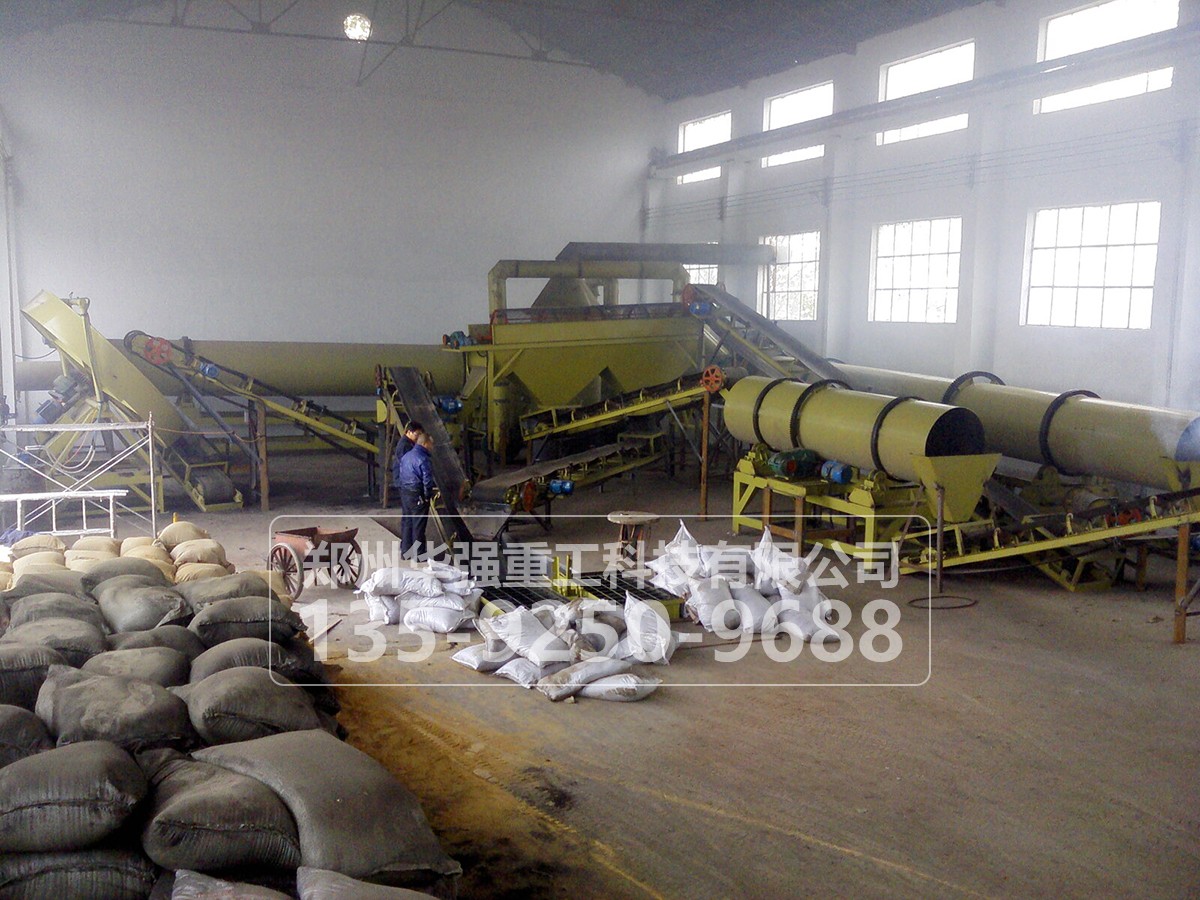 3.后處理:進(jìn)一步對堆肥成品進(jìn)行篩分,篩下物根據(jù)水分含量高低分別進(jìn)行處理。篩下物圓盤造粒機(jī)造粒造粒后,送入華強(qiáng)重工有機(jī)肥專用烘干機(jī),進(jìn)行烘干,按比例添加各種添加物后攪拌混合后制成成品,進(jìn)行分裝,入庫待售。篩上物返回粉碎工序進(jìn)行回用?! ?/p>
